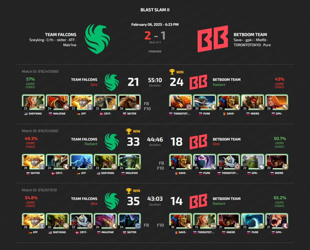 With this victory, Team Falcons move on to face Yakult's Brothers in the Quarterfinals of Blast Slam II. Meanwhile, despair continues for the BetBoom Team, as they have been eliminated due to the "King of the Hill" format.