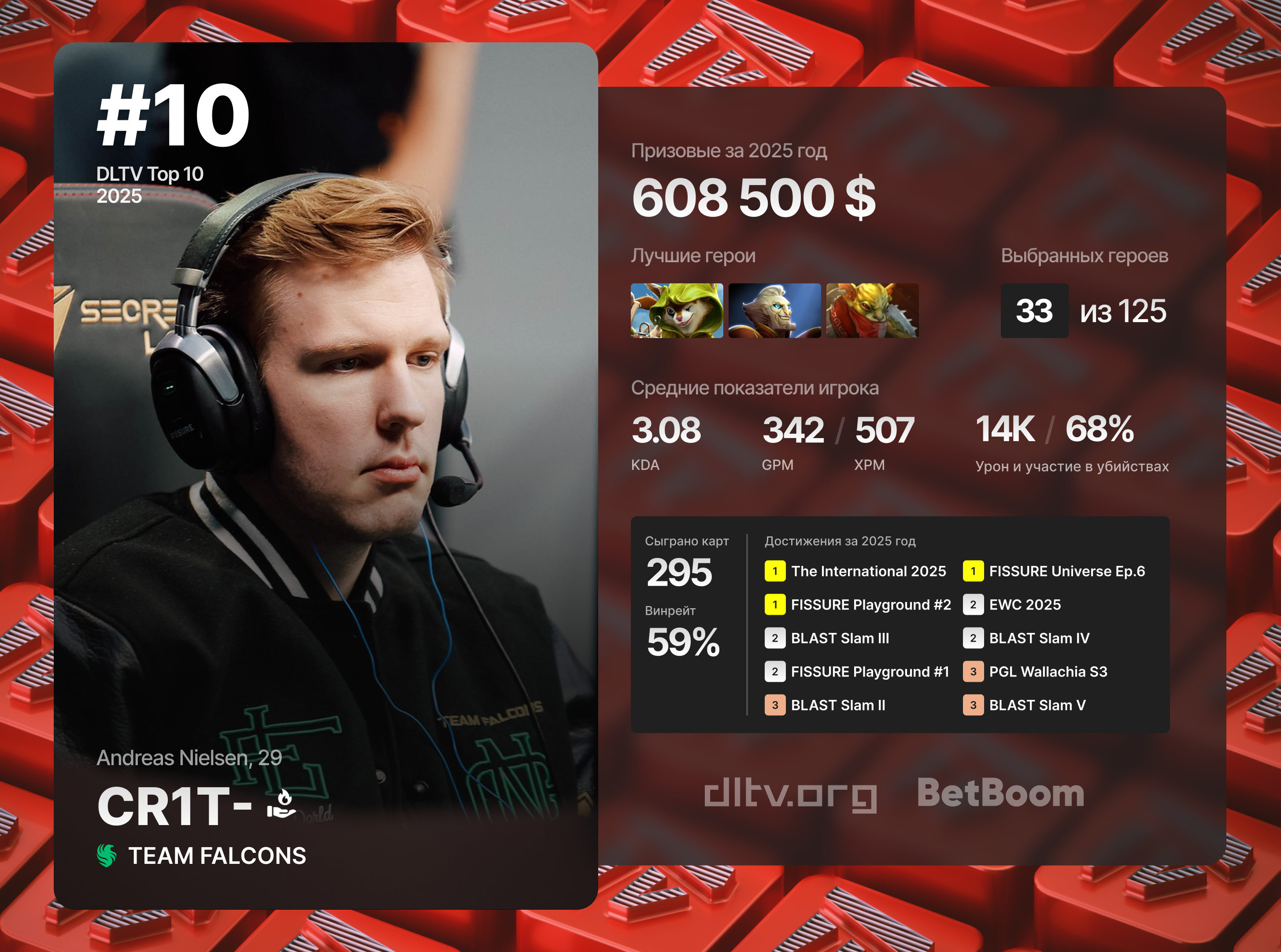 All participants have been revealed: we sum up the top 10 best players of 2025 according to DLTV.ORG, which was compiled based on the individual stats and team results of each player throughout the season.