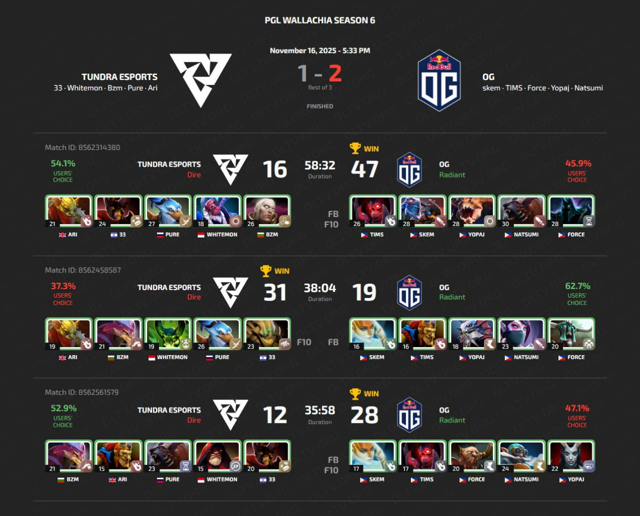 OG mengalahkan Tundra dan mencapai 2-0 di PGL Wallachia S6, hasil hari kedua