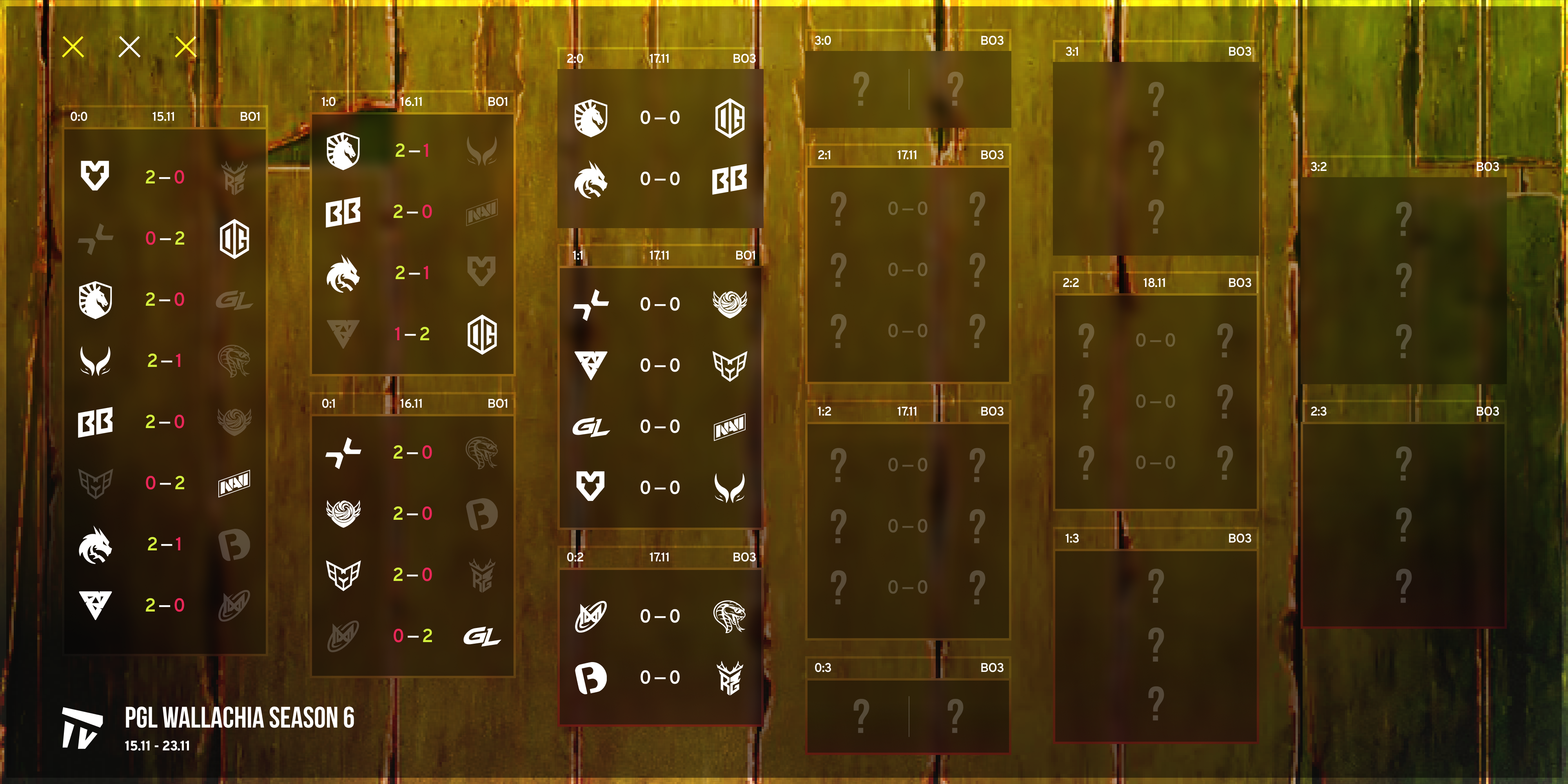 PGL Wallachia Season 6 berlangsung dari 15 hingga 23 November di Bucharest, Rumania. Hadiah total turnamen adalah 1 juta dolar.
