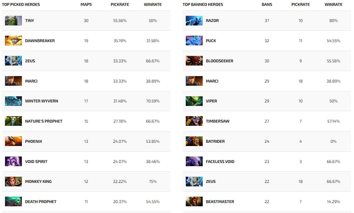 - Hero with the Highest Win Rate (over 10 maps): Razor – 80% WR.