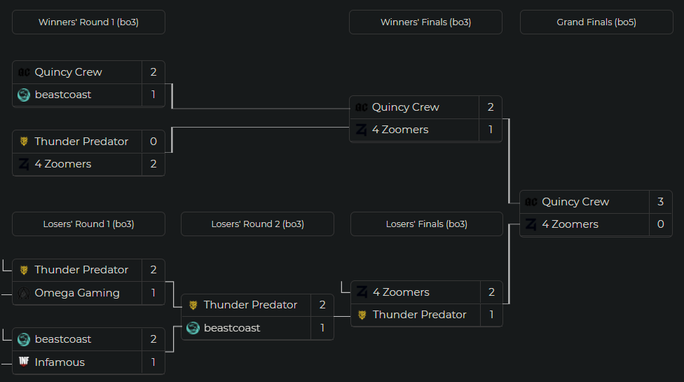 OMEGA League: Americas Divine Division ended. ??Quincy Crew became the champion of the tournament, defeated ??4 Zoomers with a 3:0 score.
