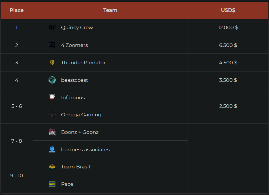 It is the sixth championship title for ??Quincy Crew. Since May, the team won all the tournaments it took part in. Interestingly, in BTS Pro Series Season 3: Americas, which starts tomorrow, ??Quincy Crew doesn't participate. The exact reason is still unknown, but most likely, they will follow the example of ??Evil Geniuses and move to the European region in the near future.