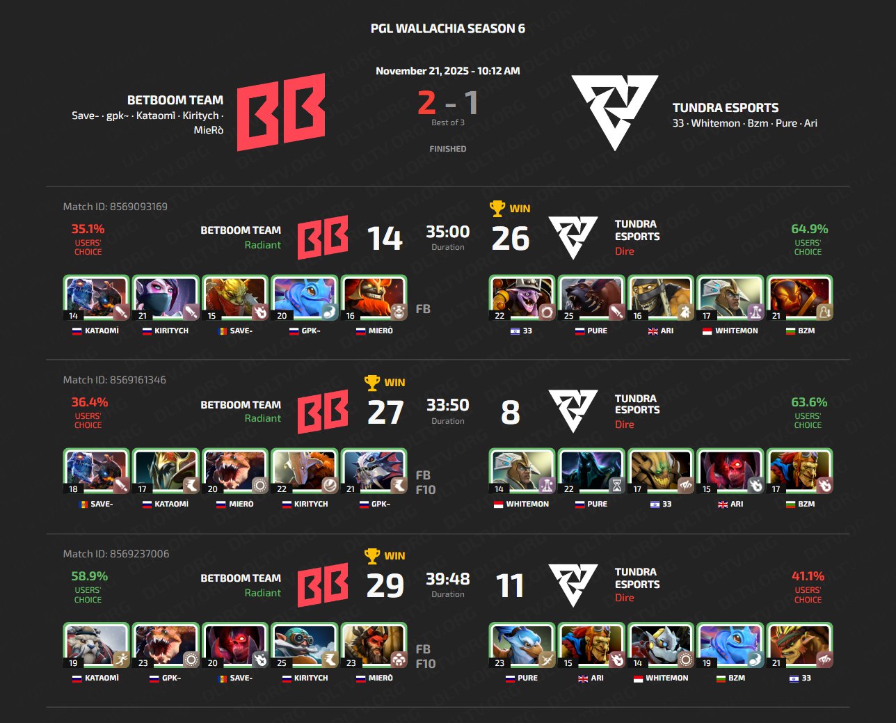 Pertarungan kedua hari ini ditandai dengan pertemuan penting Pure dengan mantan timnya, yang berakhir tidak menguntungkannya. BetBoom Team tidak menunjukkan diri sebagai salah satu tim paling andal di PGL Wallachia Season 6, tetapi mereka jelas lebih baik daripada Tundra Esports.